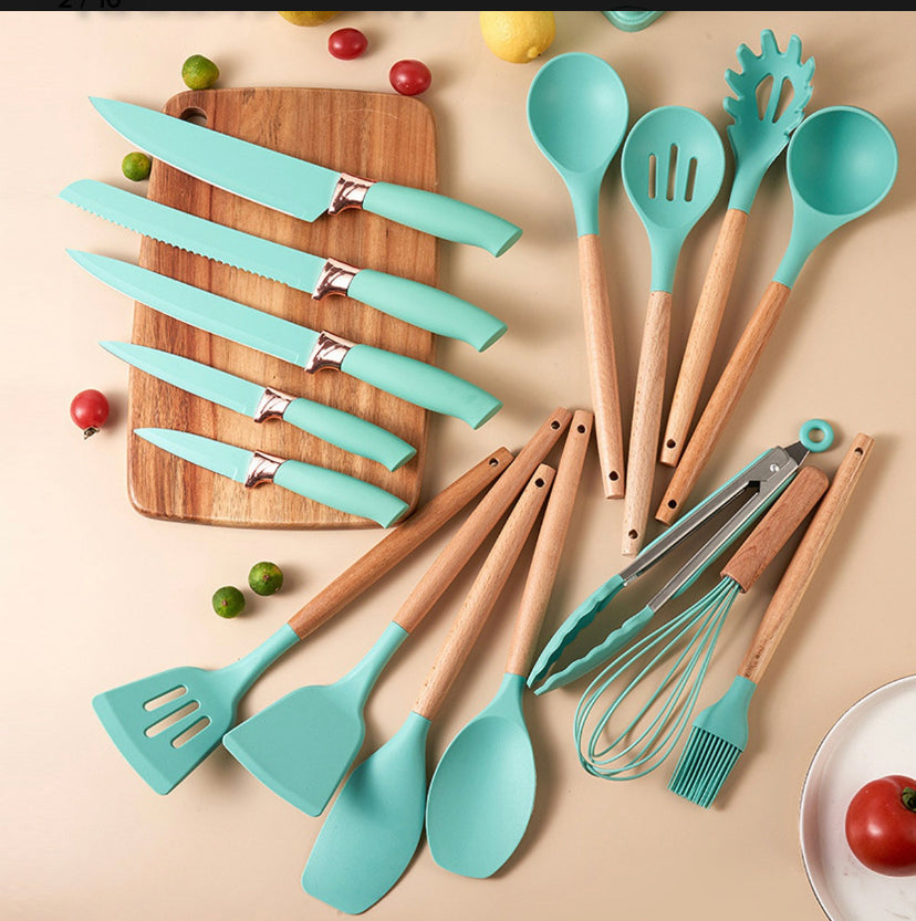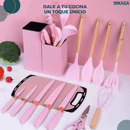 Incluye todas las herramientas esenciales para una amplia gama de tareas culinarias como revolver, mezclar, batir, servir y cortar.